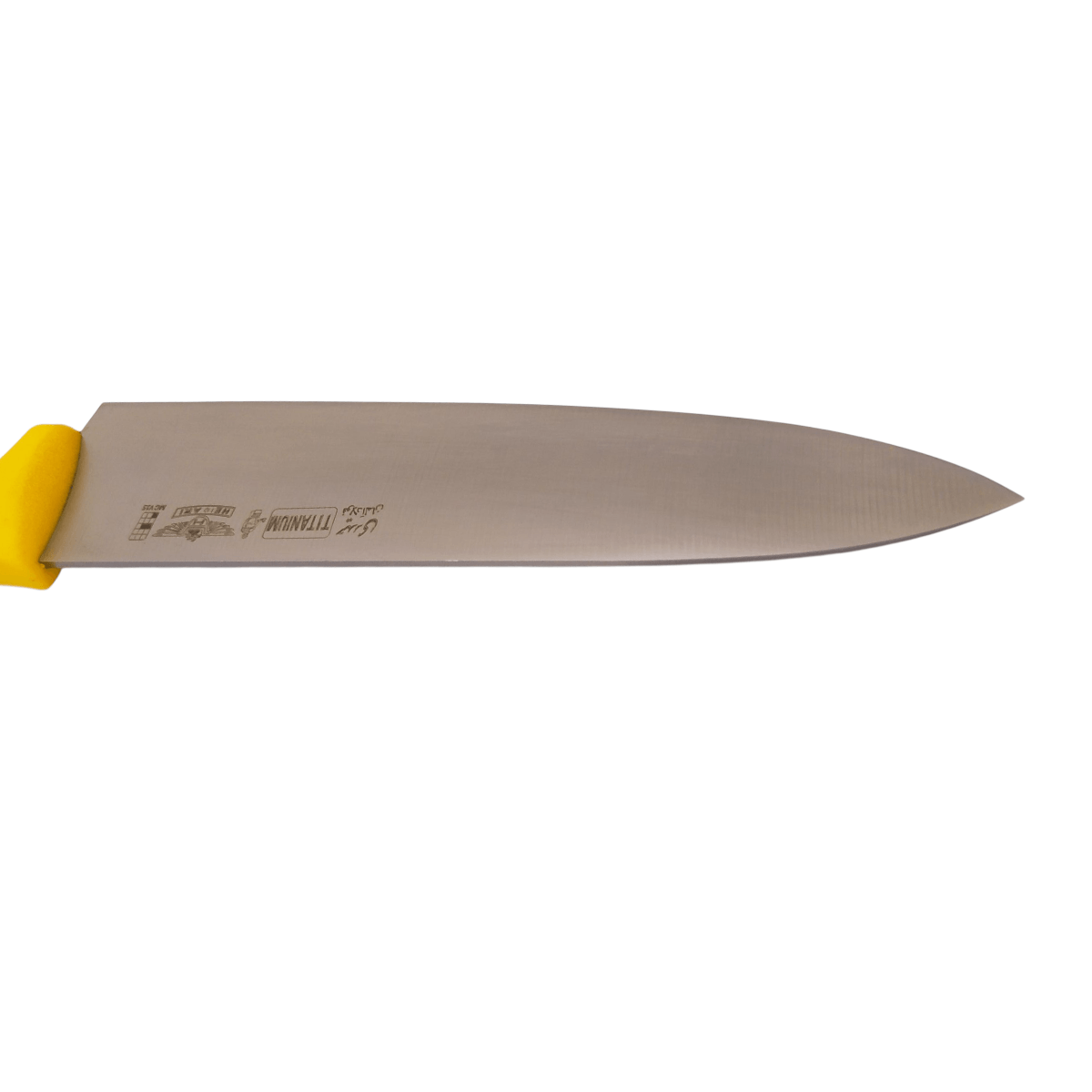رنگ لیمویی روشن دسته نه تنها جلوهای زیبا و متفاوت به چاقو داده، بلکه به شناسایی سریع آلودگی و خون روی سطح دسته نیز کمک میکند و تمیزکاری را آسانتر میسازد.
